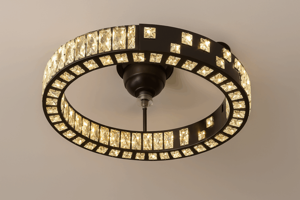 This piece transforms ceilings into a showcase of elegance and practicality.