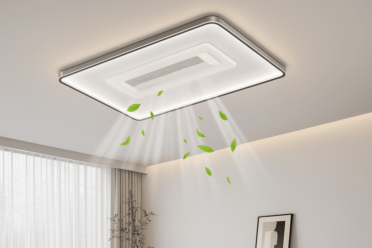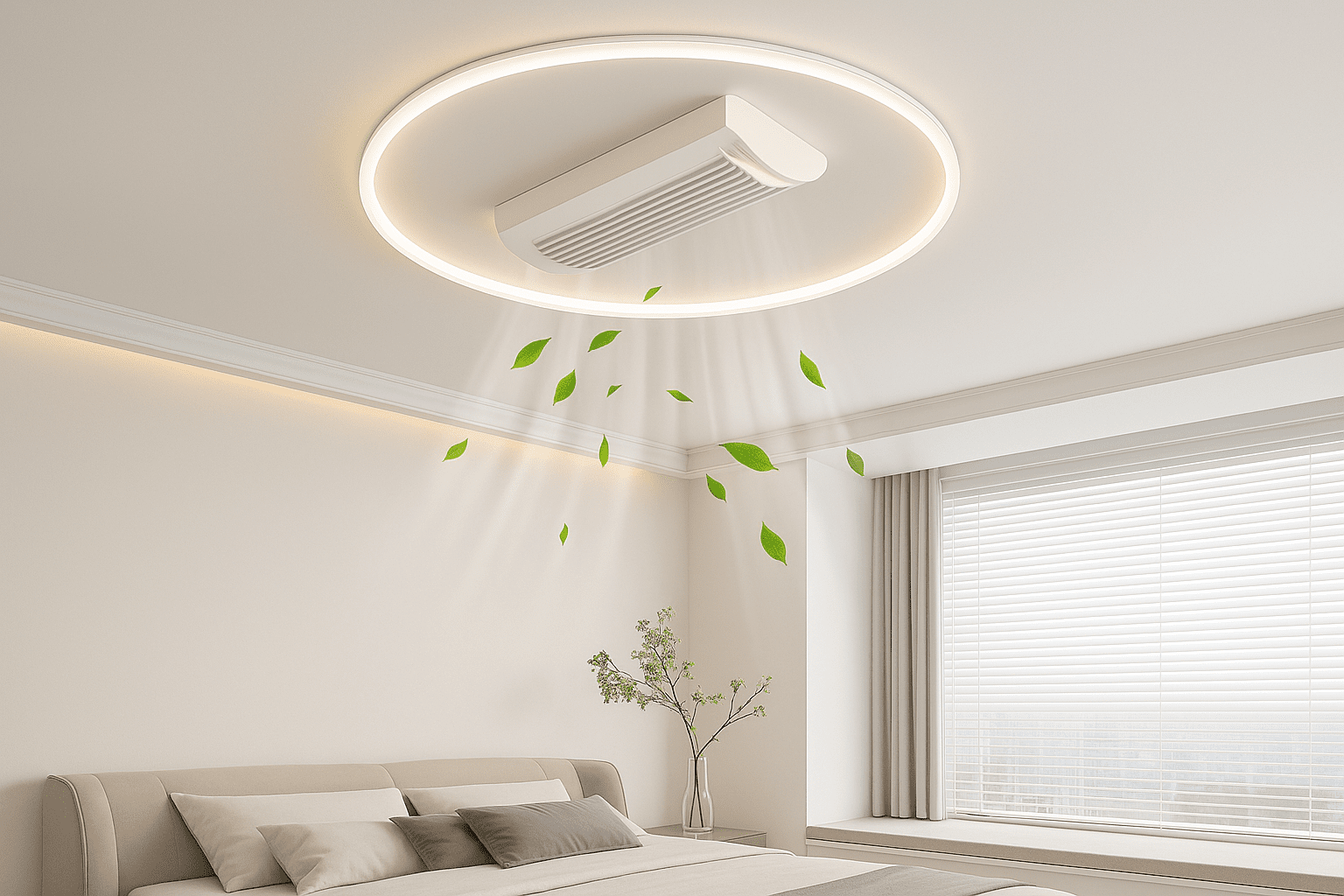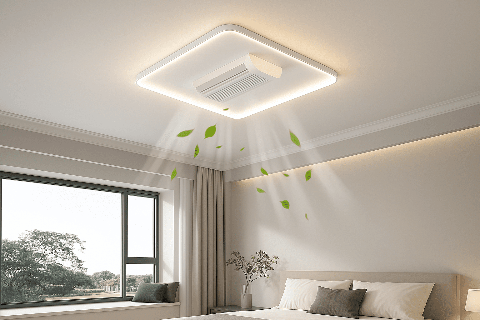 Application: Perfect for bedrooms, hotel rooms, and minimalist living spaces seeking clean-lined lighting with added airflow.