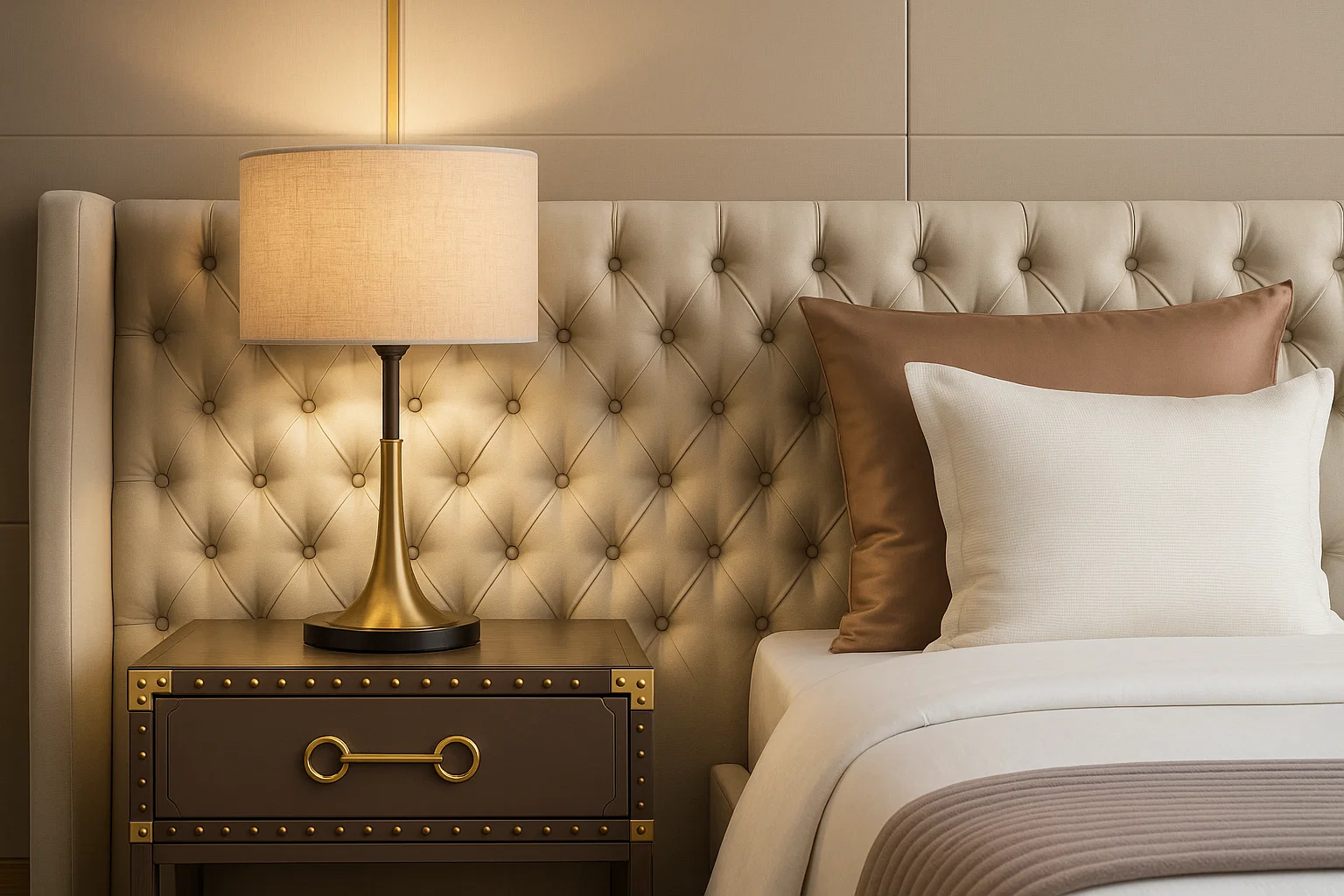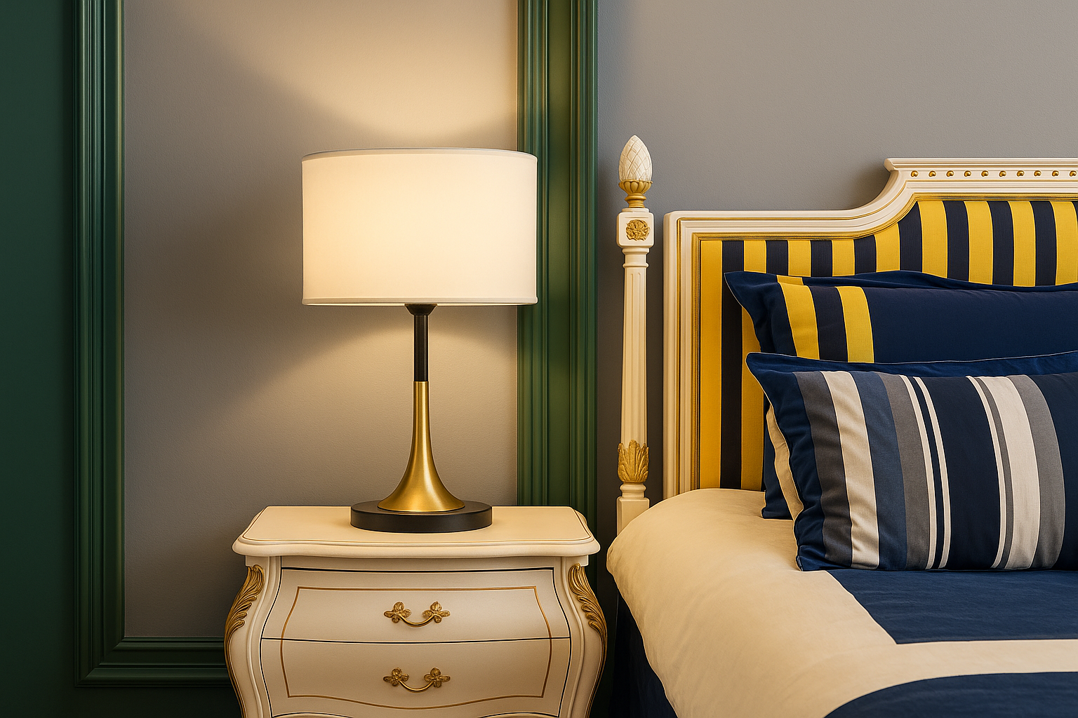 The AuraLuxe™ Table Lamp brings luxury lighting to any bedside, hotel suite, or stylish home interior. With a sleek iron base and a textured cloth lampshade, it radiates warmth, comfort, and minimalist sophistication — perfect for restful environments or upscale decor schemes.