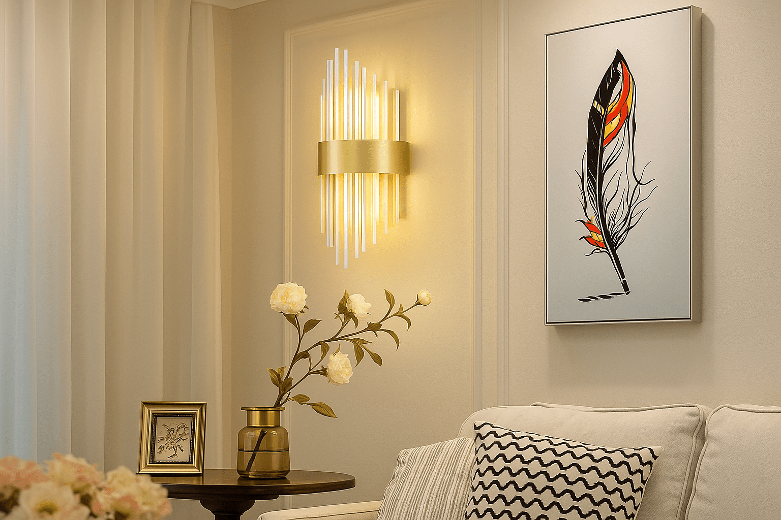 Elevate your interiors with the Thierlux™ Gold Crystal Rod Wall Lamp — a stunning blend of crystal elegance and modern structure. Designed for hotel lobbies, luxury villas, and stylish home spaces, this vertically layered piece casts soft, warm white light (3500K) through precision-cut crystal rods and golden steel arms.