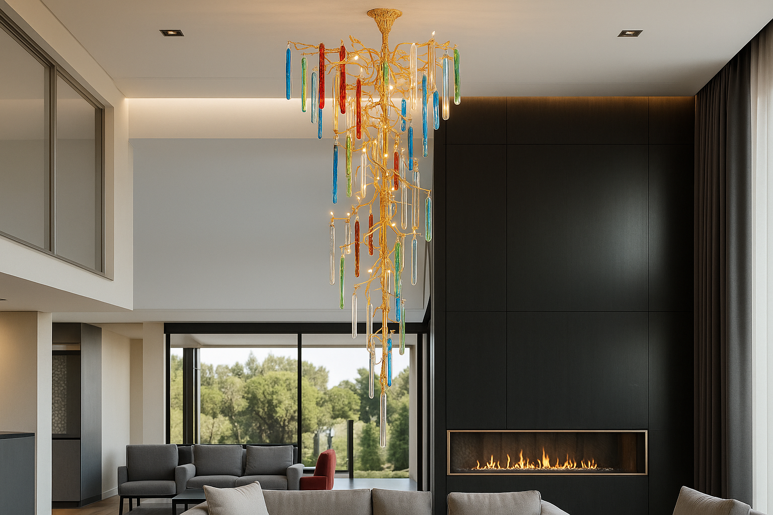 Bring natural elegance into your space with the Verdao™ Organic Spiral Branch Crystal Chandelier — a radiant design that mimics the shape of cascading vines and glowing dew drops . Hand-forged in a luxurious copper finish and adorned with colored crystal rods, this artful centerpiece turns any lobby or villa entrance into a statement of modern nature inspired design .